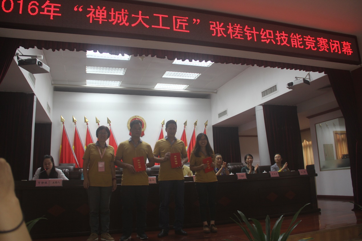 黃小連經(jīng)理代表嘉謙紡織領(lǐng)取2016年“禪城大工匠”張槎針織技能競(jìng)賽“優(yōu)秀組織獎(jiǎng)”
