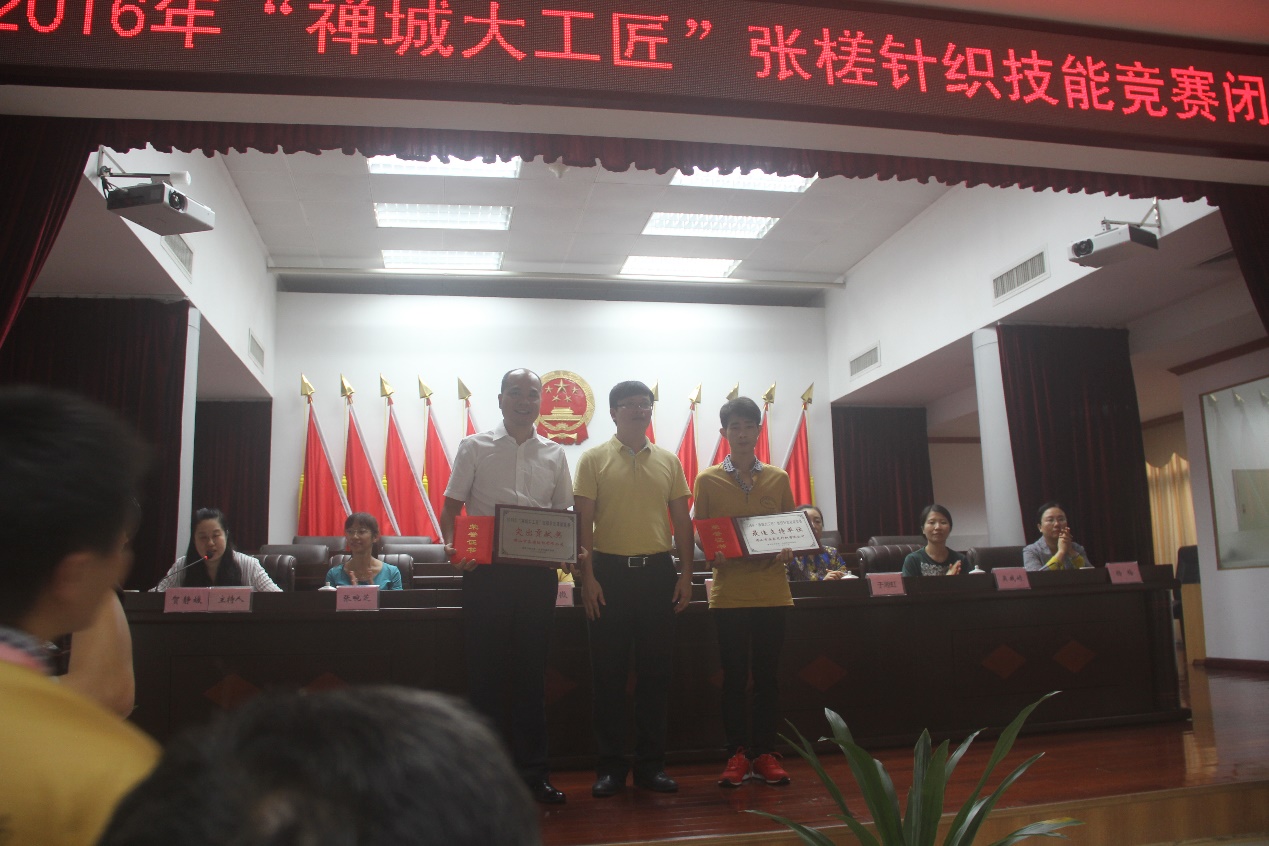 夏鈺翔經(jīng)理代表嘉謙紡織領(lǐng)取2016年“禪城大工匠”張槎針織技能競(jìng)賽團(tuán)體總分第一名